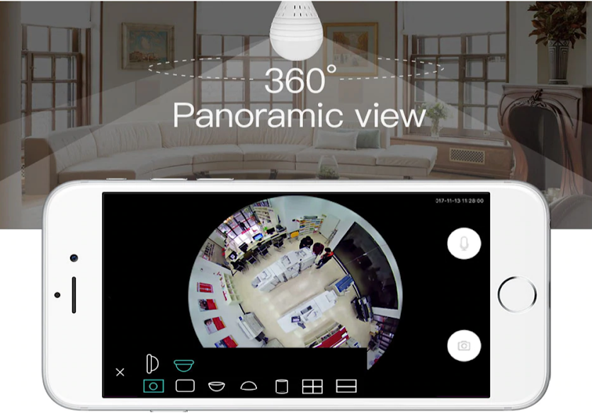 ✅Cámara tipo bombillo con sensor de movimiento y gran apertura para mayor vigilancia de su Hogar u Oficina.